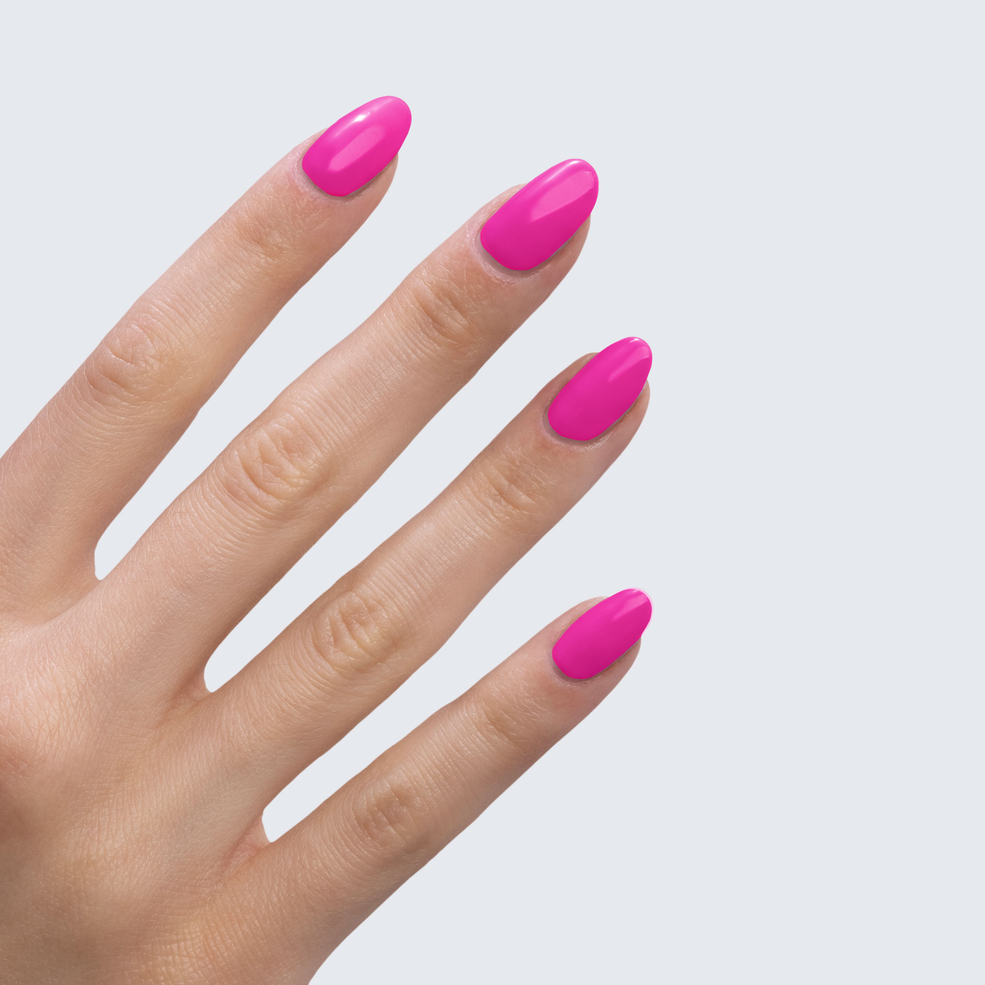 Neon fuchsia. Bright. Pearl finish. Warm undertone. Medium opacity.